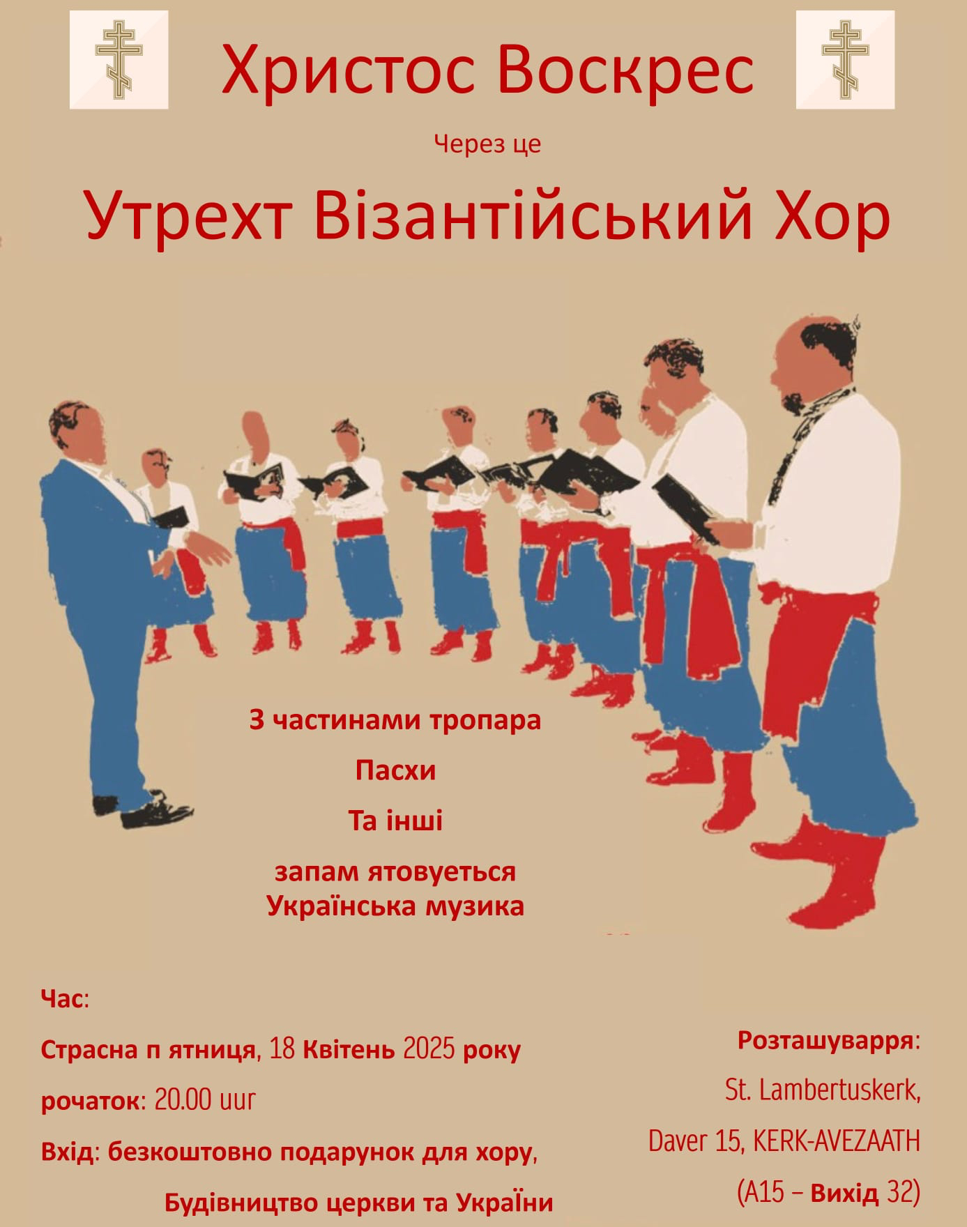 Optreden van het Utrechts Byzantijns Koor in de Sint-Lambertuskerk in Kerk-Avezaath. Christos Woskrès: Christus is verrezen! Waar wij vanuit onze cultuur vooral het lijden en sterven benadrukken in de ‘goede’ week, is men in Oost-Europa vooral gericht op dankbaarheid en het aanstaande feest van de verrijzenis in de ‘grote & ... Lees verder